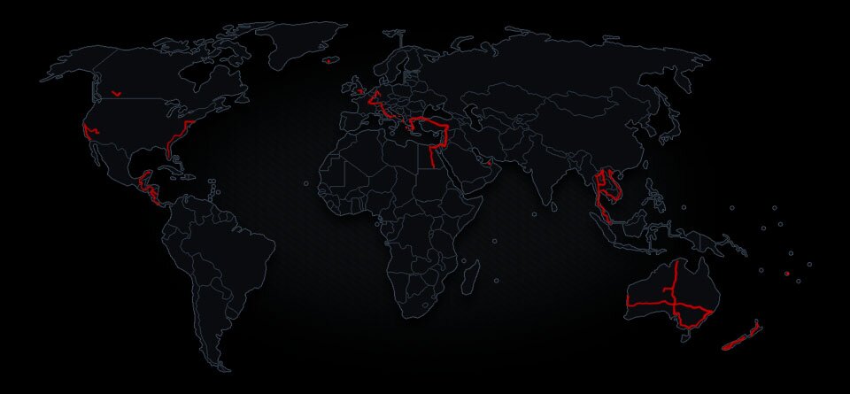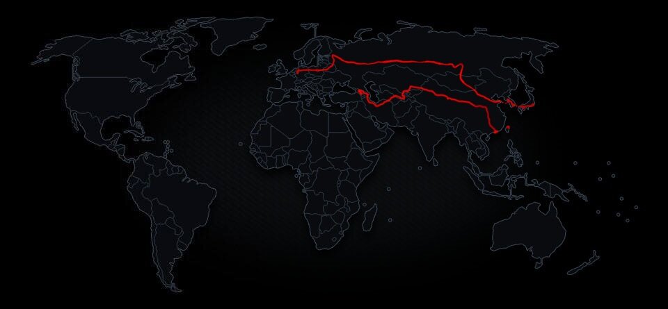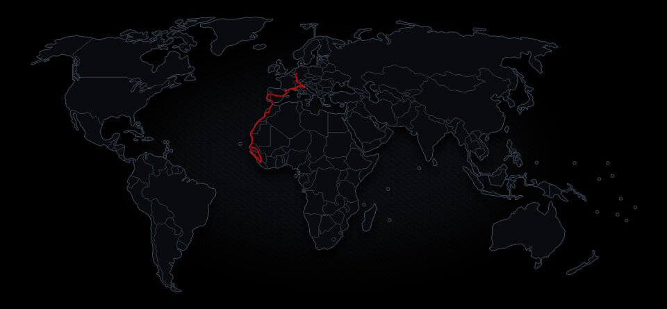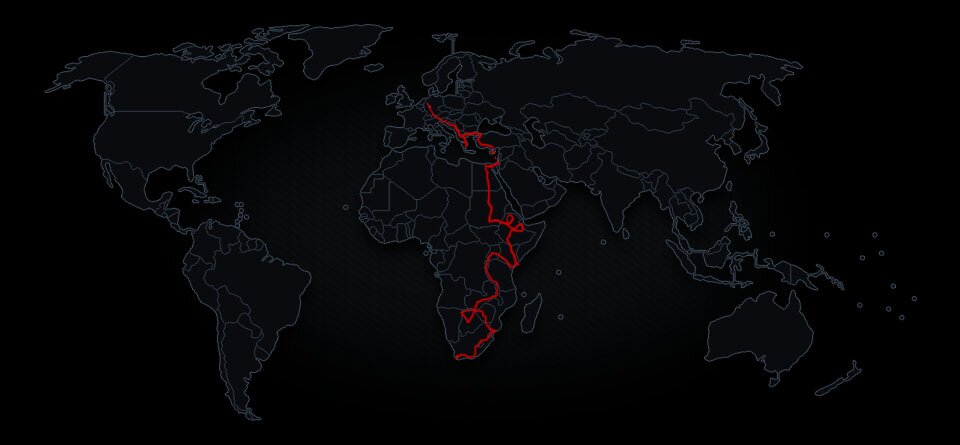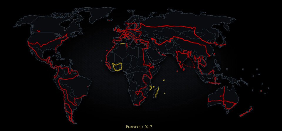 This worldmap shows the total progress with all the travelled routes. For more details on specific parts, please scroll down to Routes.